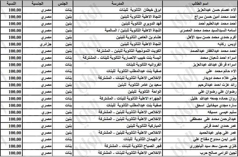 معظمهم مصريين.. الكويت تنشر أسماء الأوائل الخمسين للثانوية العامة في القسم العلمي من جميع الجنسيات