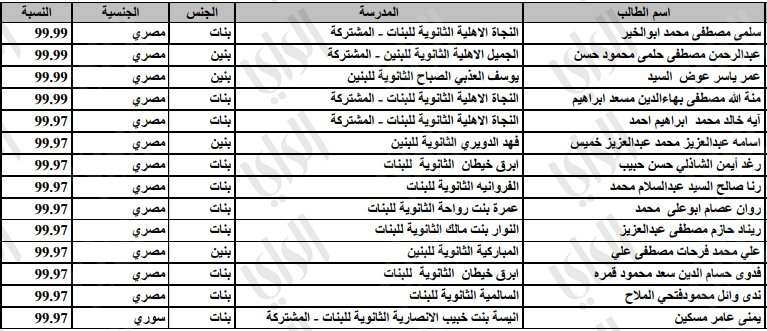 جريدة الراي الكويتية تنشر أسماء الخمسين الأوائل للثانوية العامة في القسم العلمي من جميع الجنسيات
