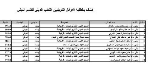 أسماء أوائل ‎الكويتيين في المعهد الديني