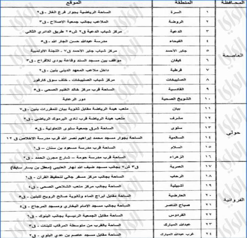 وذكرت الوزارة في بيان صحافي اليوم الاثنين أن وكيل الوزارة المساعد لشؤون قطاع المساجد بدر العتيبي أصدر تعميما حدد فيه عدد الساحات ومراكز الشباب والملاعب الرياضية بمختلف المحافظات لاستقبال جمهور المصلين لأداء صلاة العيد فيها.