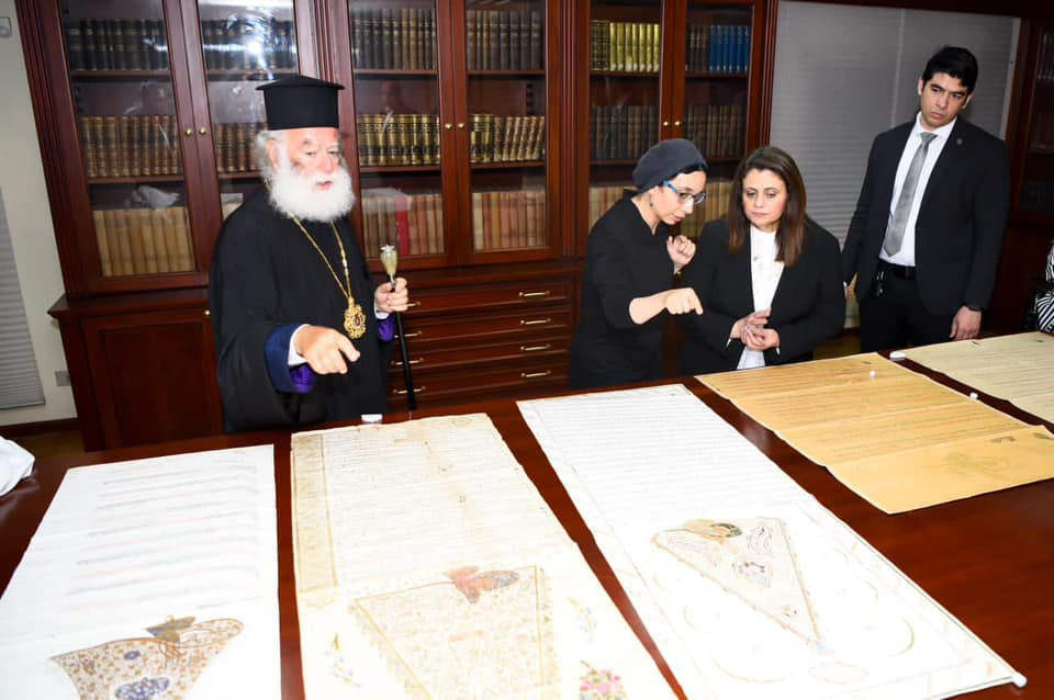 وقام بطريرك الكنيسة اليونانية باصطحاب الوزيرة سها جندي في جولة داخل بطريركية الروم الأرثوذكس الأثرية، وقام بشرح تفاصيل اللوحات والأيقونات والمذبح والمقتنيات النادرة من مخطوطات لا مثيل لها علي مستوى العالم منها أحد أقدم المصاحف، ومخطوطات في عهد الرسول صلى الله عليه وسلم عن قبط مصر في القرون الهجرية الأولى، والتي تؤرخ لمكانة العلاقات المشتركة العريقة، وكذلك زيارة متحف الآثار اليونانية داخل بطريركية الروم الأرثوذكس، وكذلك مكتبة المراجع اليونانية التي تم ترميمها، بالتعاون مع مكتبة الإسكندرية، وكذلك تفقد الزي الخاص بعدد من البطاركة ومراحل تصميمه، وجانب من الهدايا الدينية للبطريركية من جانب عدد من الرموز وقادة الدول.