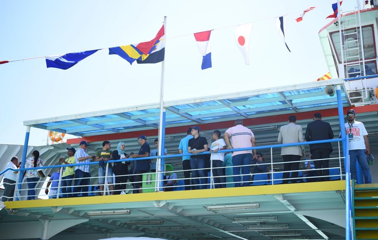 عقب ذلك، توجه الوفد لزيارة أنفاق تحيا مصر، تلاها جولة بحرية في قناة السويس الجديدة بواسطة المعدية “تحيا مصر” لمشاهدة حجم الإنجاز على أرض الواقع.