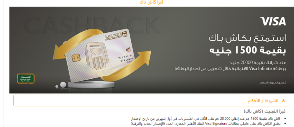 يطبق الكاش باك على حاملي بطاقات Visa Signature البنك الأهلي المصري الجدد (الإصدار الجديد والترقية)