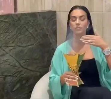 وظهرت شريكة قائد نادي النصر السعودي ومنتخب البرتغال كريستيانو رونالدو، وهي ترتدي العباءة الخضراء وتستمتع بالقهوة العربية ورائحة البخور وذلك خلال تسوقها في بعض المتاجر في الرياض.