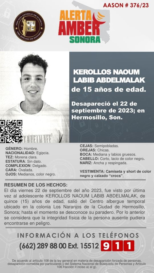 وحسب وسائل إعلام مكسيكية، فإن الشابين المصريين شوهدا في مدينة هيرموسيلو الواقعة آخر مرة، موضحة أن المختفين هما نعوم لبيب عبد الملك، البالغ 15 عاما، وإسحاق نسيم الكاس عبد المسيح ويبلغ 17 عاما.