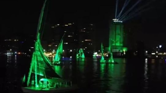 ووفقا لفيديو نشرته السفارة السعودية عبر صفحتها على منصة إكس، أظهر إطلاق العديد من المراكب الشراعية في نهر النيل باللون الأخضر وعليهم العلم السعودي، مع إطلاق الألعاب النارية فوق السفارة في منظر بهيج.