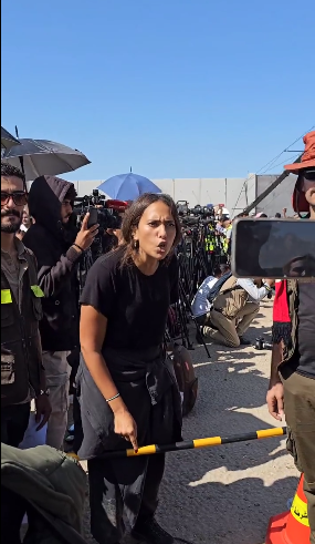 وقالت المتظاهرة رحمة للمراسلة، “أفهم أنك تمثلين حكومتك وسياساتك التى تدعي أنها تدعم حرية التعبير وحرية الرأى، لكن أنتم تفهمون معنى الديمقراطية وفقا لما تريدون فقط، وتتعاملون مع المبادئ بما يتماشي مع مصالحكم فقط.. والآن نحن نرى نتائج احتلالكم ونشاهد نتائج صهيونيتكم ونشاهد نتائج سوء تعبيركم عن العرب.. نشاهد تعاملكم غير الإنساني مع العرب ونظرتكم الدونية لهم”.