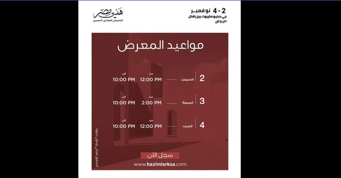 ويمكن التسجيل لحضور المعرض والتعرف على التفاصيل الخاصة بالحدث من خلال الرابط التالي اضغط هنا (علما بأن الحضور مجاني)
