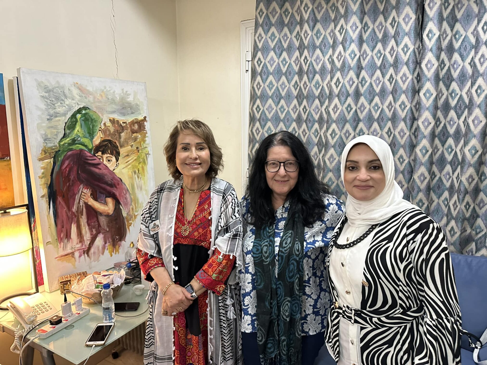 كما قدمت الفنانة التشكيلية سكينة الكوت نموذجين من اعمالها الفنية التي تجسد مأساة اطفال فلسطين ولبنان وشاركت د جيهان الدمرداش في قراءة مضمون اللوحتين وتفسير معانيهما وما ترمزان اليه