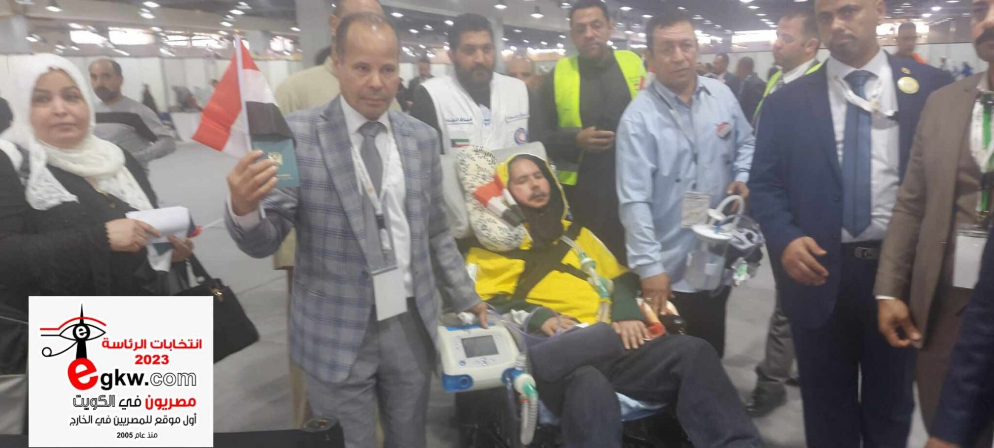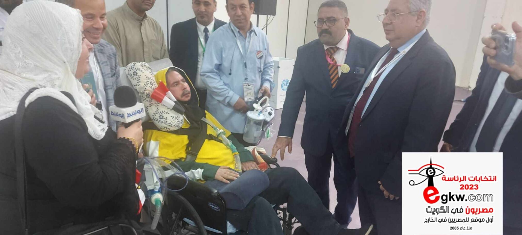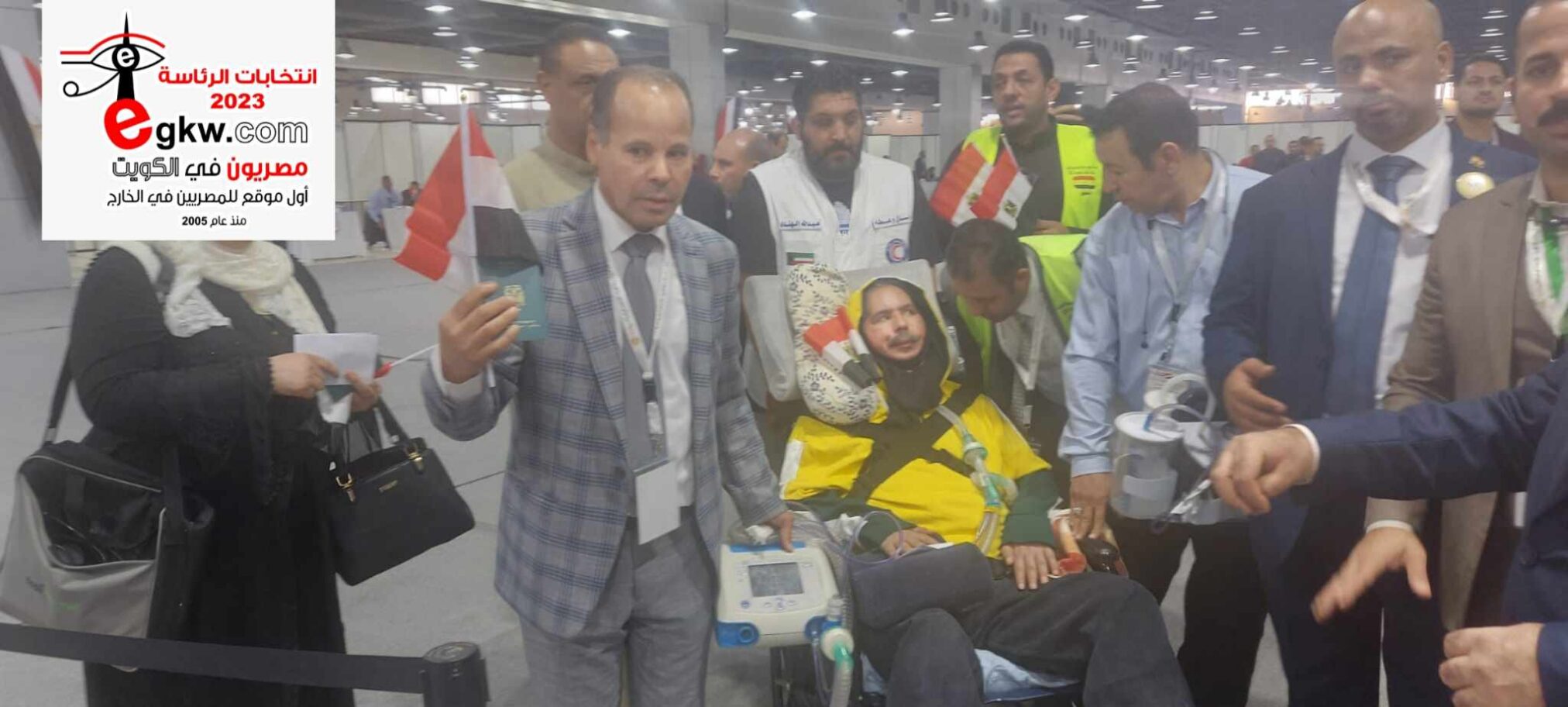 “أبو ريان” يتحدى المرض. مواطن مصري بالكويت يصل لجان الاقتراع بالأجهزة الطبية للمشاركة في التصويت