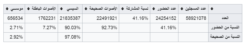 تفوق الرئيس عبد الفتاح السيسي في نتائج النصويت وحسم النيجة دون الحاجة إلى جولة إعادة وجاءت النتائح كالتالي:
