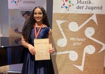 ده مش أول إنجاز فقد حصلت مريم على جوائز عديدة آخرها العام الماضي، حيث حققت المركز الأول في مسابقة “بريما لا موزيكا” في الغناء على مستوى النمسا، وقبلها المركز الأول في مسابقة موسكو الدولية للعزف على البيانو.