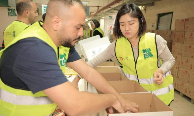 موظفو شركة دي دي مصر يتعاونون مع مؤسسة مصر الخير في تعبئة وتغليف المساعدات الإنسانية للأسر الأولي بالرعاية