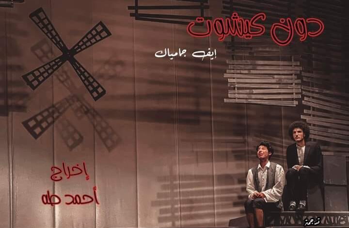 العرض المسرحي «دون كيشوت» تمثيل: باڤلي سامح، يحيى ياسر ، مصطفى العركي، أحمد رجب، آيه آبوضيف ، بسمله طارق، هنا مختار، مي صلاح، علي لوكا، رحمه محمود، ميرنا أشرف ، زياد عياده، عمار محمد، عبد الرحمن إبراهيم، أحمد هنيدي، محمد حسام، ناديه علاء، فادي مجدي، مهند هريسه، يوسف حماده، سالمه رجب، ترجمة: فتحي العشرى، تصميم بوستر محمد عطا، أشعار أحمد زيدان، موسيقي و ألحان رفيق يوسف، غناء توني ألبير، بيشوي نادر، دينا حسين، أوليفيا غالي، رقصات شريف مبارك، إضاءة أبو بكر الشريف، ملابس و إكسسوارات رامي شهاب، ديكور عمرو الأشرف، مساعدو الإخراج :ميرنا عمرو، صاموئيل اثناسيوس، محمد تامر، مريم جلال، نور الشريف، مدرب تمثيل محمود مدحت، مخرج منفذ معتز مدحت، تأليف: إيف جامياك، إخراج أحمد طه