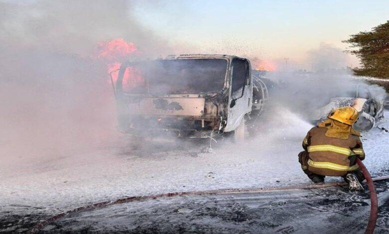 تعاملت فرقة إطفاء مركز الإستقلال عصر اليوم الاثنين مع حادث تصادم و حريق بين مركبة و صهريج مواد سريعة الإشتعال على طريق الدائري السادس وتم السيطرة على الحريق وإخماده وتسليم الموقع للجهات المختصة.