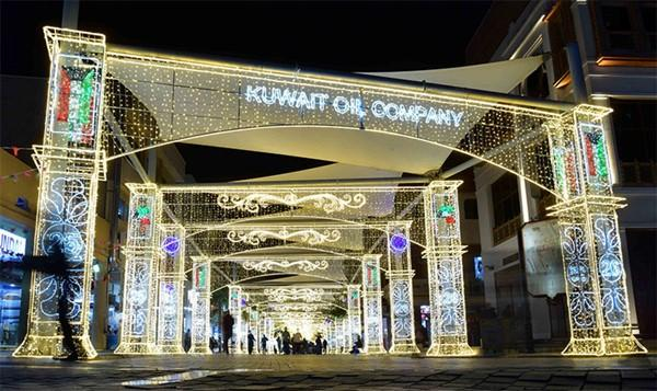 احتفالا بالأعياد الوطنية تزين سوق المباركية بأعلام الكويت وتصميمات بالأضواء والألوان للعلم وأبرز معالم البلاد لتعكس طابعاً وطنياً تراثياً أخاذاً.