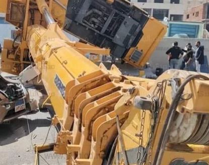 سقط ونش كبير، فوق سيارتين بشارع التسعين بمنطقة التجمع بالقاهرة الجديدة، اليوم، قبل الإفطار.