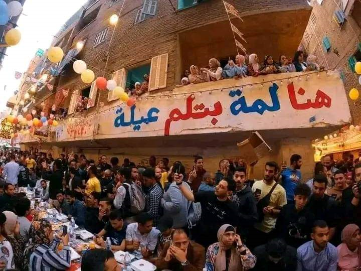 وفي سياق متصل، حرص الأهالي على تزيين الشوراع بعدد من الجداريات، ومنها عبارات: “كل القلوب الخير فيها”، “اصحى يا نايم”، “لمة العيلة”، “الأكل من جوا البيت”، “وحوي يا وحوي”، بجانب رسومات الفوانيس وبكار ورشيدة، وغيرها من الشخصيات المصرية الأصيلة من منشدين ارتبطت أصواتهم بالليالي الرمضانية وكلمات أغاني رمضان الشهيرة.