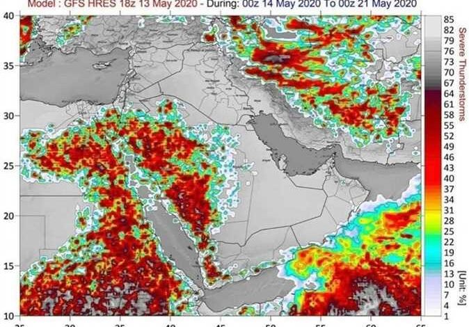 وحذرت الأرصاد الجوية من حدوث تقلبات في حالة الطقس عند مرور منخفض السودان الموسمى، حيث يتسبب في سقوط الأمطار جنوب البلاد في فصل الربيع كما ستشهده بعض المناطق خلال الثلاثة الأيام القادمة، لافتة إلى أن الفرصة موجودة وقائمة لسقوط الأمطار على جنوب البلاد وسيناء وسلاسل جبال البحر الأحمر.