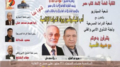 تنظم شعبة السيناريو برئاسة السيناريست إبراهيم محمد علي، بالنقابة العامة لاتحاد كتاب مصر بالتعاون مع شعبة الدراما برئاسة الشاعر سعيد…
