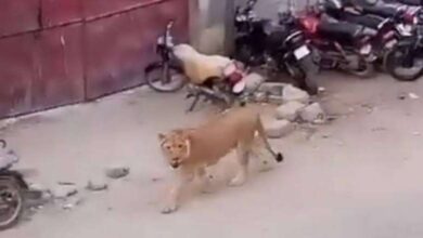 أسد هارب يثير الذعر بشارع مزدحم في باكستان