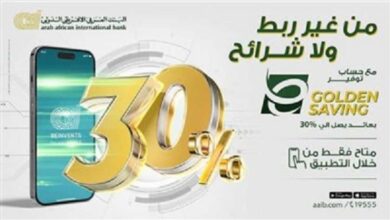 أتاح البنك العربي الأفريقي الدولي حساب توفير بعائد يصل إلى 30%، من أول أبريل المقبل، وفقا لما أعلنه البنك العربي…