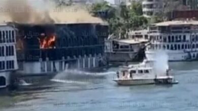اندلاع حريق هائل في باخرة على كورنيش النيل بـ الجيزة