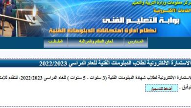 ننشر رابط نتيجة الدبلومات الفنية 2023